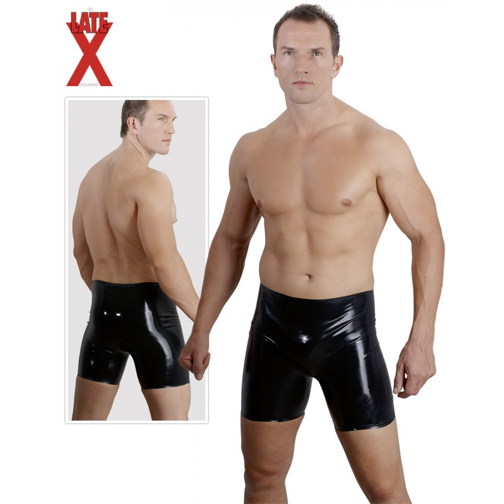 Bermuda in latex nero per uomo , amplifica le tue sensazioni stimolando i sensi grazie alla sua incredibile aderenza mettendo in risalto le zone intime. costruito in puro latex naturale.