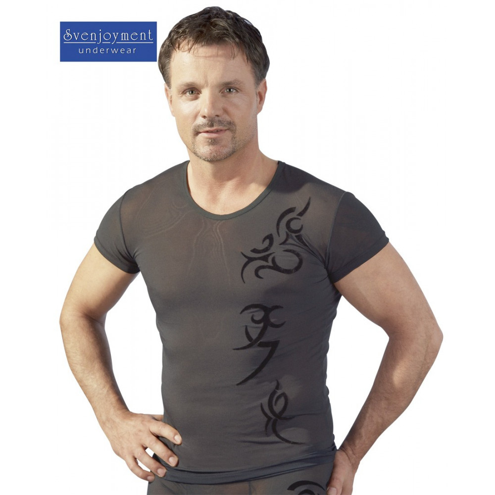 T-SHIRT IN TESSUTO SEMITRASPARENTE CON TATTOO TRIBALE