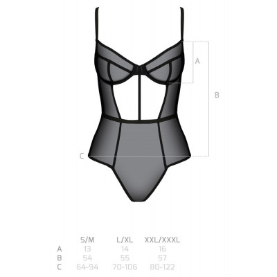 Body Varella morbido e coccoloso della Collezione Eco di Passion realizzato interamente in powernet elastico. Seducente stile Rio con cut-out frontale, tagli alti sulle gambe e chiusura con gancio sul cavallo. Le coppe sono con ferretto e le spalline sono regolabili per una vestibilità perfetta. Piccolo cut-out rotondo sul retro sotto la chiusura a 1 gancio.