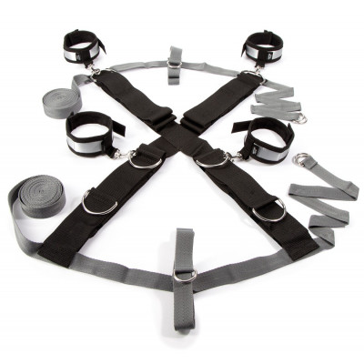 Set di costrizione bondage ufficiale da \"Cinquanta sfumature di grigio\". Perfettamente adattabile a qualsiasi letto, è caratterizzato da polsiere e cavigliere in raso con chiusura a velcro mentre l'interno è contorniato di morbida pelliccia per un'esperienza confortevole, sicura e completa.