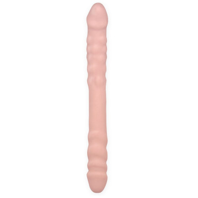 Doppio dildo con glande gonfio su entrambe le estremità.