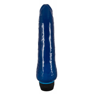 Vibratore blu in materiale gelatinoso. Scivolante e con una potente vibrazione. Clit e ano saranno piacevolmente stimolati. Con vibrazioni a più velocità. Lunghezza 22 cm, Ø 4 cm.