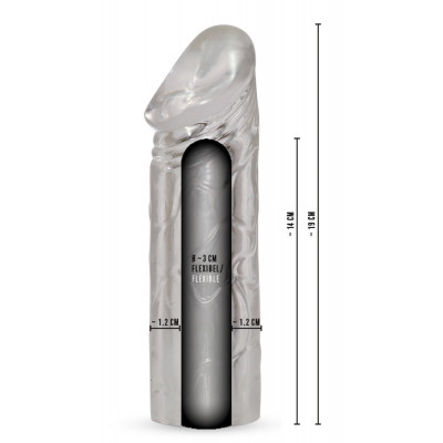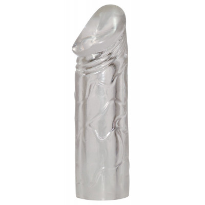 Guaina fallica mega dick sleeve. Prolunga fallica realizzata in morbido silicone trasparente con vene in rilievo per una maggiore stimolazione. Incrementerà la lunghezza del vostro pene di 5 cm, e il diametro di circa 2 cm. Particolarmente flessibile ed elastica. La sua aderenza renderà ancora più consistente la vostra erezione ritardando l?eiaculazione. • Lunghezza esterna 19 cm. • Lunghezza interna 14 cm • Diametro: 3 cm