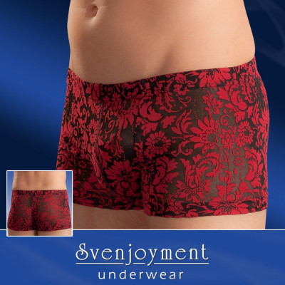 Boxer retrò da uomo \"Ornament\" XLTessuto a rete trasparente con nobile disegno floreale devoré. Nero / rosso. 54% poliammide, 38% cotone, 8% spandex.