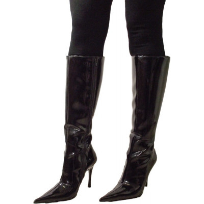 Splendido stivale nero lucido con altezza appena sotto il ginocchio. Il giusto completamento fetish per una serata piena di emozioni. Allacciatura tramite comoda zip. Esterno 100% poliestere con rivestimento in poliuretano. • Colore: Nero lucido;