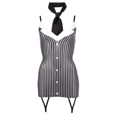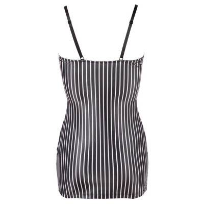 Abito aderente con spalline regolabili e due bretelle sul davanti. Bottoni decorativi sul davanti e un leggero colletto attorno alla scollatura scollata. Cravatta inclusa. Nero bianco. 92% poliestere, 8% spandex.